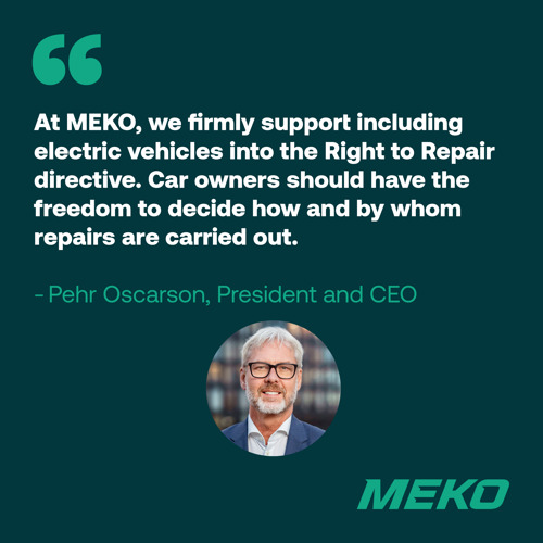 “At MEKO, we firmly support including electric vehicles in the Right to Repair directive. Car owners should have the freedom to decide for themselves how and by whom repairs are carried out. For decades, independent workshops have played an important role in the industry, ensuring competition and cost-effective repair solutions,” says Pehr Oscarson.